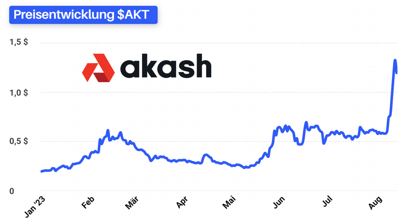 Nun, wenige Wochen vor dem Mainnet-Launch, nimmt die Price Action zu. In den vergangenen 7 Tagen hat sich der hauseigene $AKT-Token verdoppelt. Aufs gesamte Jahr gesehen ist der Token sogar über 500% im Plus.