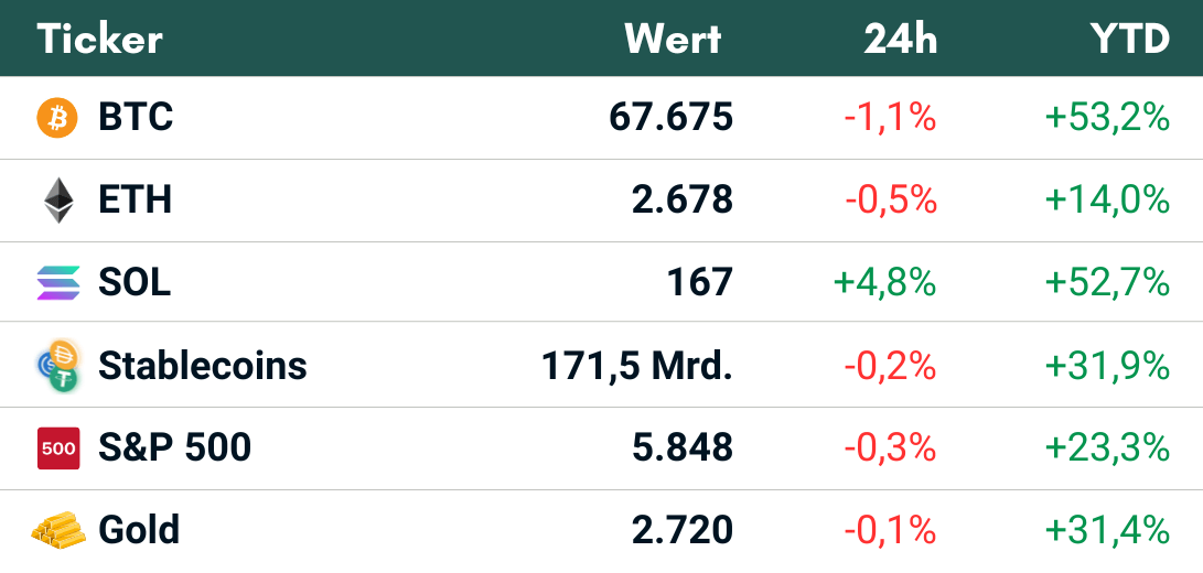 Nachhaltig starke ETF-Nachfrage (mehr als 2,1 Milliarden USD an Nettozuflüssen in Bitcoin-Spot-ETFs allein in der letzten Woche).