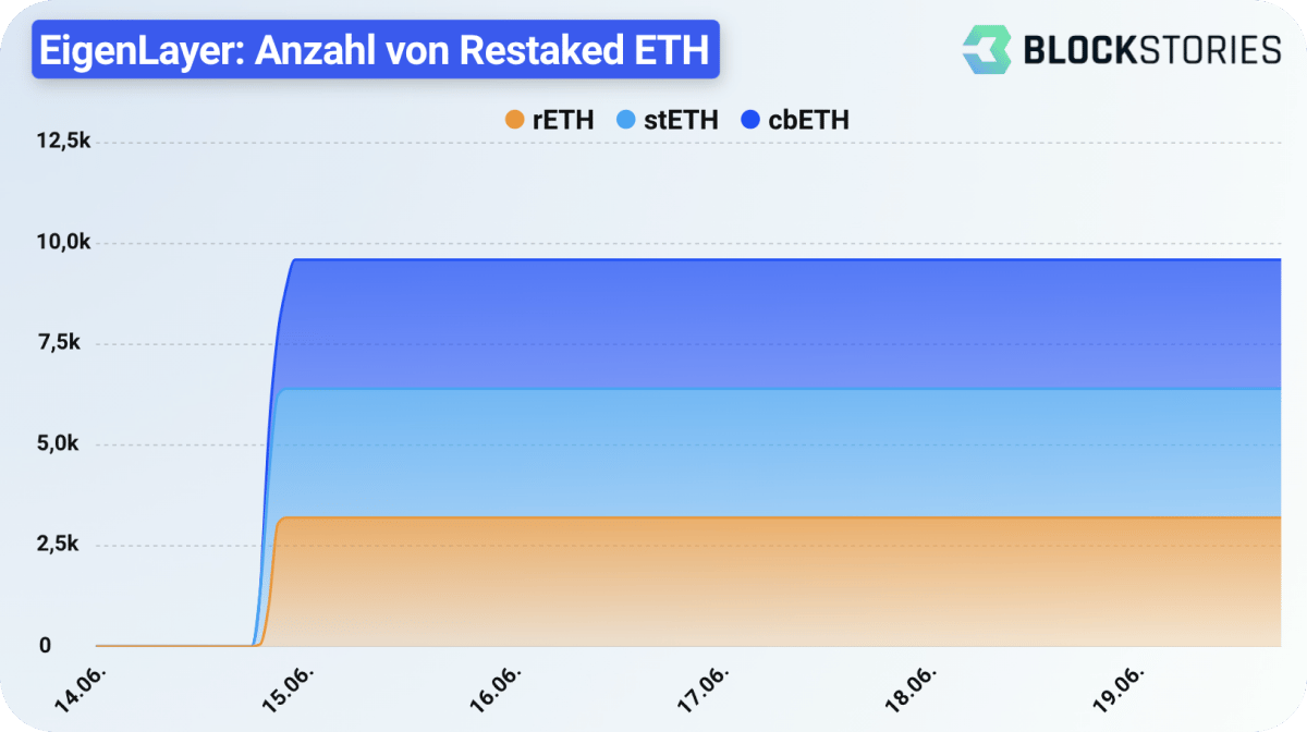Liquid Restaking bezieht sich auf das Restaken von LSDs, wobei die Menge auf jeweils 3,200 cbETH, rETH und stETH begrenzt wurde. Dieses Limit von ebenfalls 9,600 ETH wurde bereits wenige Stunden nach dem Launch erreicht.