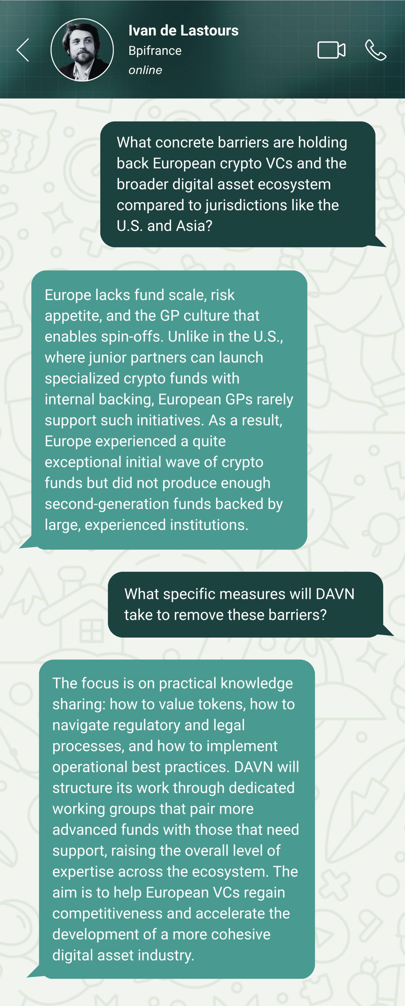 On Monday, he and a group of European VCs announced the Digital Assets Venture Network (DAVN), a pan-European initiative created to promote, strengthen, and structure the blockchain venture industry across Europe.