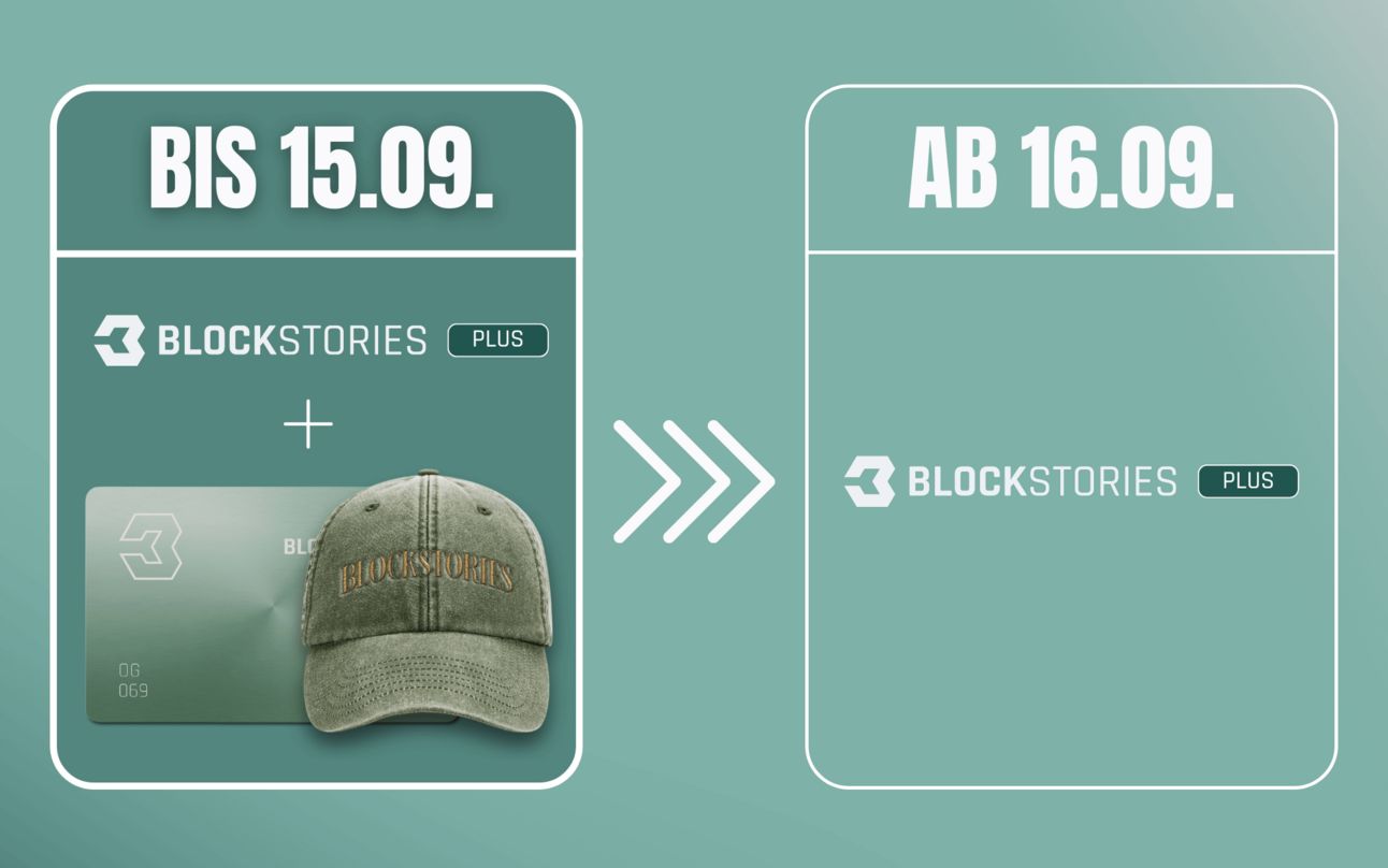 Am Sonntagabend endet unser limitiertes Angebot zum Launch von Blockstories Plus. Für euch die letzte Chance, einen Blockstories Loyalty Pass und ein Basecap abzugreifen. No more NFTs und Caps danach. Go, go, go!