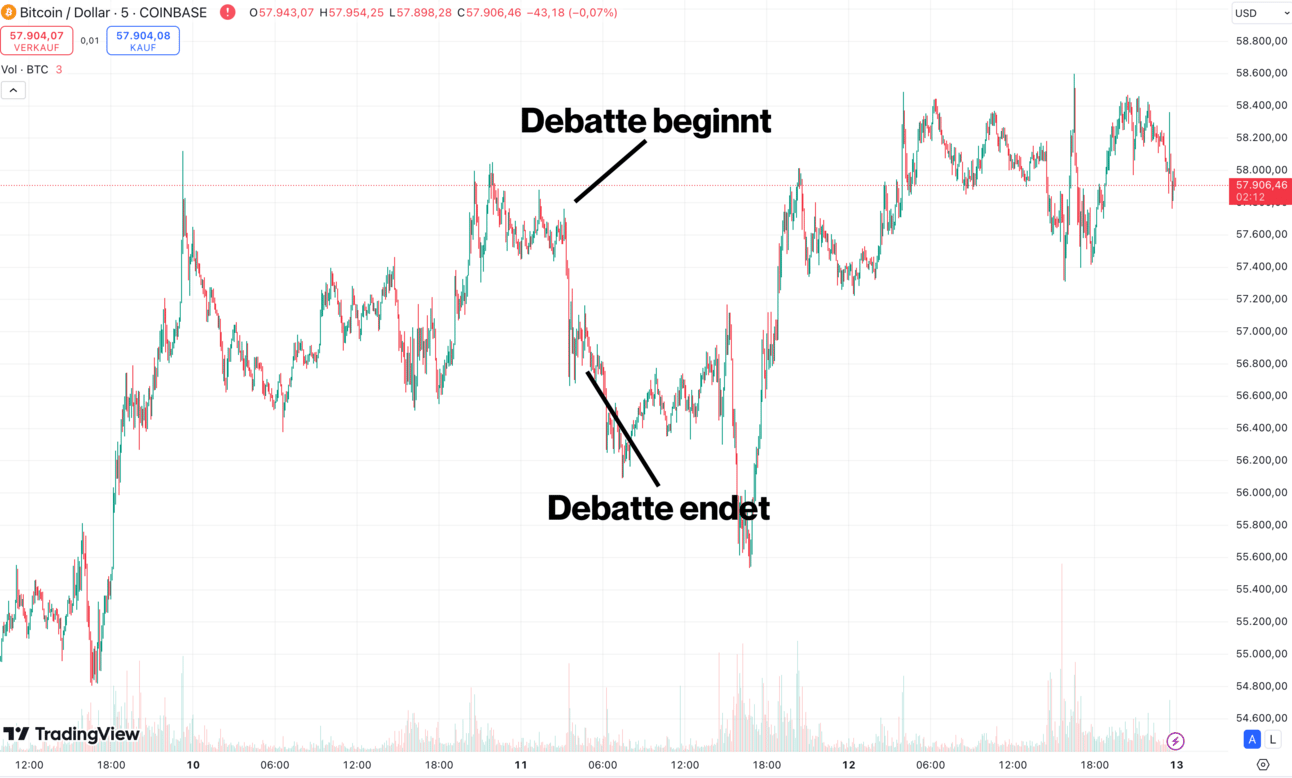 Ereignisreiche Tage. Zunächst wäre da das TV-Duell der beiden US-Präsidentschaftskandidaten, aus dem Kamala Harris nach Meinung aller als klare Siegerin hervorging. Polymarket sieht sie inzwischen leicht in Führung, was sich kurzfristig auch auf den Bitcoin-Kurs auswirkte, der nach den ersten Minuten des TV-Duells zügig an Boden verlor.