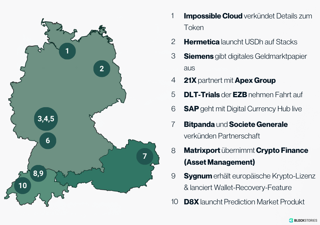 DLT-Trials der EZB nehmen Fahrt auf. Neben dem Bankhaus Metzler, verkündeten auch die Börse Stuttgart sowie die DZ Bank erfolgreiche DLT-basierte Transaktionen im Rahmen der Explorationsphase der Europäischen Zentralbank (EZB). Zusätzlich hat die Sparkasse Dortmund eine digitale Anleihe auf der SWIAT Blockchain emittiert.🇩🇪
