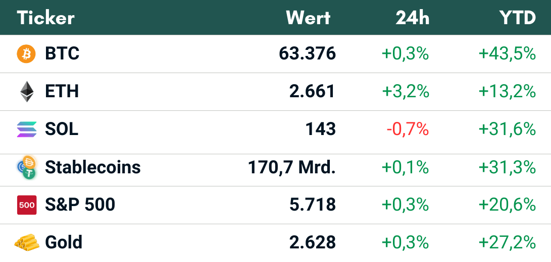 Die vergangenen Tage standen weiterhin im Zeichen der jüngsten Leitzinskürzung durch die US-Notenbank, wobei Ether unter den Majors besonders zulegen und Bitcoin nach langer Zeit wieder einmal outperformen konnte. Auch ausgewählte Altcoins - allen voran TAO (+90%, siehe unsere Analyse), SUI (+49%) und IMX (+47%) - konnten in den vergangenen sieben Tage einen Teil ihrer im Jahresverlauf erlittenen Verluste wettmachen.