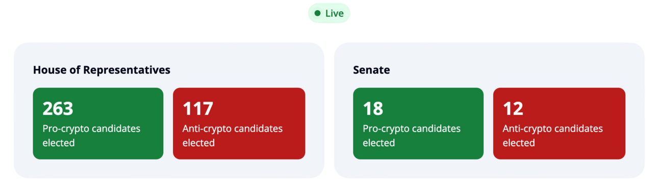 Die beträchtlichen 130 Millionen USD an Wahlspenden, die Fairshake, die Interessengruppe der Krypto-Industrie, in diesem Wahlkampf an krypto-freundliche Kandidaten beider Parteien vergeben hat, haben offenbar Wirkung gezeigt.