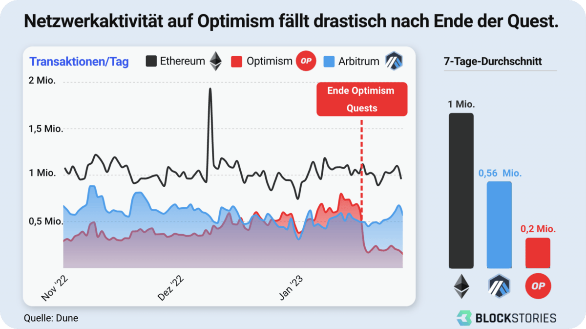 Abgeschlossen: Optimisms Quest-Programm wurde am 17. Januar beendet. Nutzer, die bis dahin verschiedene dApps auf Optimism ausprobiert haben, wurden mit besonderen NFTs belohnt.