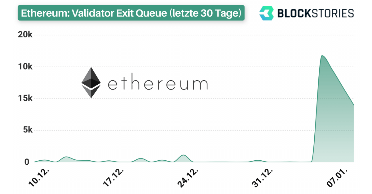 Am vergangenen Freitag hat die Anzahl an Validatoren, die einen Ausstieg aus dem Ethereum Netzwerk initiiert haben, mit knapp 16.000 ein neues Allzeithoch verzeichnet.