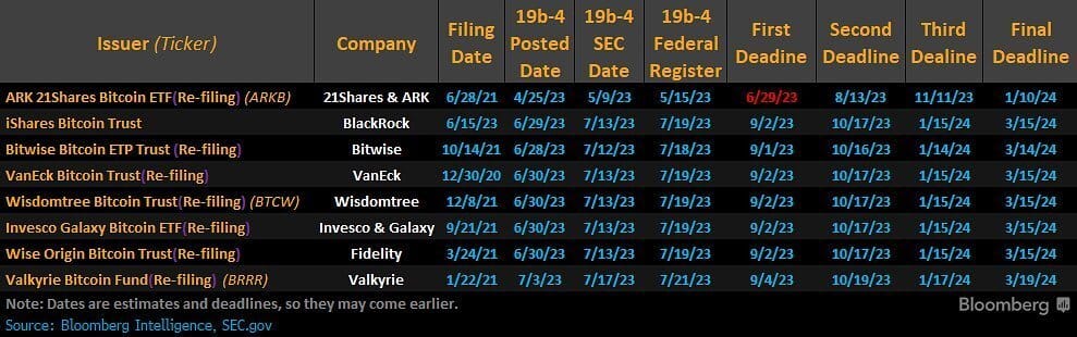 Offizielle Timeline der Bitcoin-ETF-Anträge