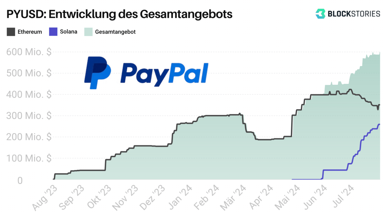 PayPals PYUSD ging im vergangenen August auf dem Ethereum Mainnet live und expandierte im Mai dieses Jahres auf Solana.