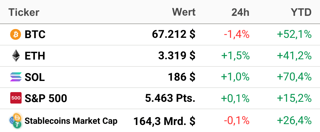 Worauf wir diese Woche ansonsten schauen werden? Auf die neuen Quartalszahlen von Coinbase, MicroStrategy, MARA und Galaxy Digital, die allesamt am Donnerstag berichten werden.