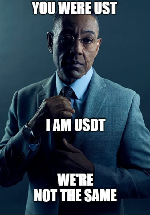 Der kurze Kursabsturz des Stablecoins Tether (USDT) am vergangenen Donnerstag soll durch Anleger verursacht worden sein, die den Coin mit UST verwechselt haben. Kleiner Reminder: USDT: meistgehandelter Stablecoin, dessen Kurs 1:1 durch Reserven wie bspw. US-Dollar gesichert wird. UST: hatte keine US-Dollar Reserven sondern sollte über einen Algorithmus den 1,00 $ Kurs halten. In aller Hektik kommen bei Kürzeln auch wir mal durcheinander.