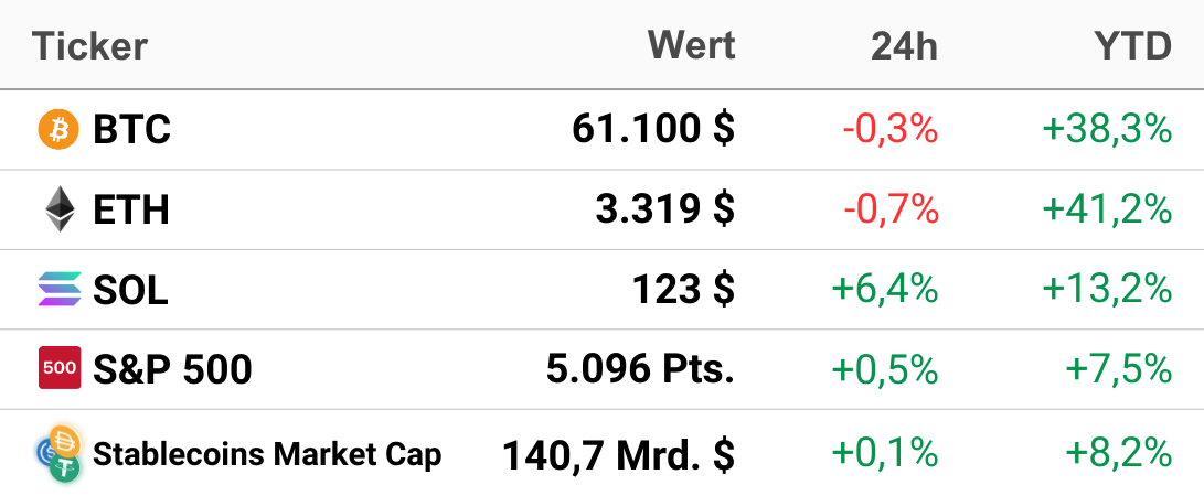 In Degen Land ist unterdessen seit gestern Abend das Scheinwerferlicht auf Blast gerichtet. Die Layer-2 Blockchain ist nun offiziell gelauncht und wird in den nächsten Wochen the place to be für alle Airdrop-Farmer sein. Wir beobachten das aus sicherer Entfernung, nehmen auf vielfach geäußerten Wunsch hin allerdings Blast und alle relevanten Protokolle in den nächsten Tagen in unseren Airdrop-Guide auf. Also watch out.