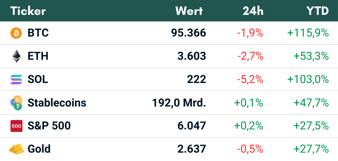 Umso dankbarer werden Analysten über den anderen großen Gewinner der letzten Tage gewesen sein: die dezentrale Terminbörse / Layer-1 Blockchain Hyperliquid. Dessen neuer Token HYPE stieg nach dessen Launch am Freitag um über 160% und geht damit als finanziell lukrativster Airdrop der Krypto-Geschichte ein. Später dazu mehr.