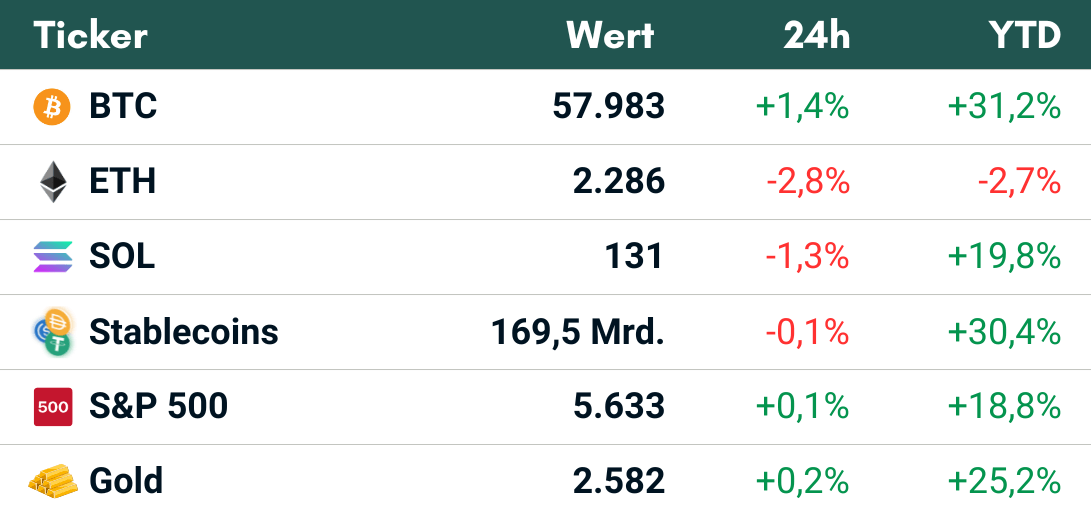 Das war’s für heute. In der Nacht sollten heute übrigens weitere Details zu Trumps DeFi-Projekt bekanntgegeben werden. Am Freitag dazu mehr.