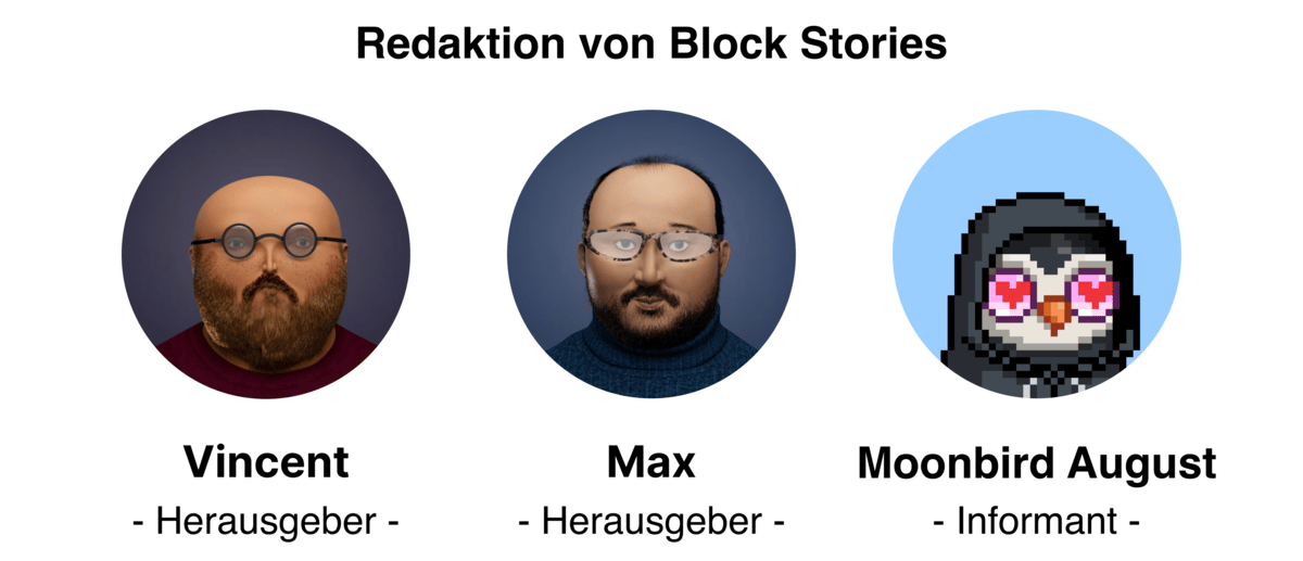 Disclaimer: DYOR (Do Your Own Research)! Die im Block Stories Newsletter und auf der Block Stories Webseite enthaltenen Informationen stellen in keiner Weise eine Anlageberatung dar. Wir bemühen uns Fakten und Meinungen nach bestem Wissen und Gewissen zu präsentieren. Diese sollten aber unter keinen Umständen eigene Recherche oder professionelle Beratung ersetzen. Deshalb gilt: wir übernehmen keine Haftung für Anlageentscheidungen, die Sie aufgrund der hier präsentierten Informationen treffen.